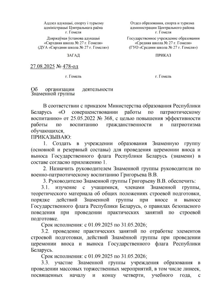 Знамённая группа ГУО “Средней школы № 27 г.Гомеля”