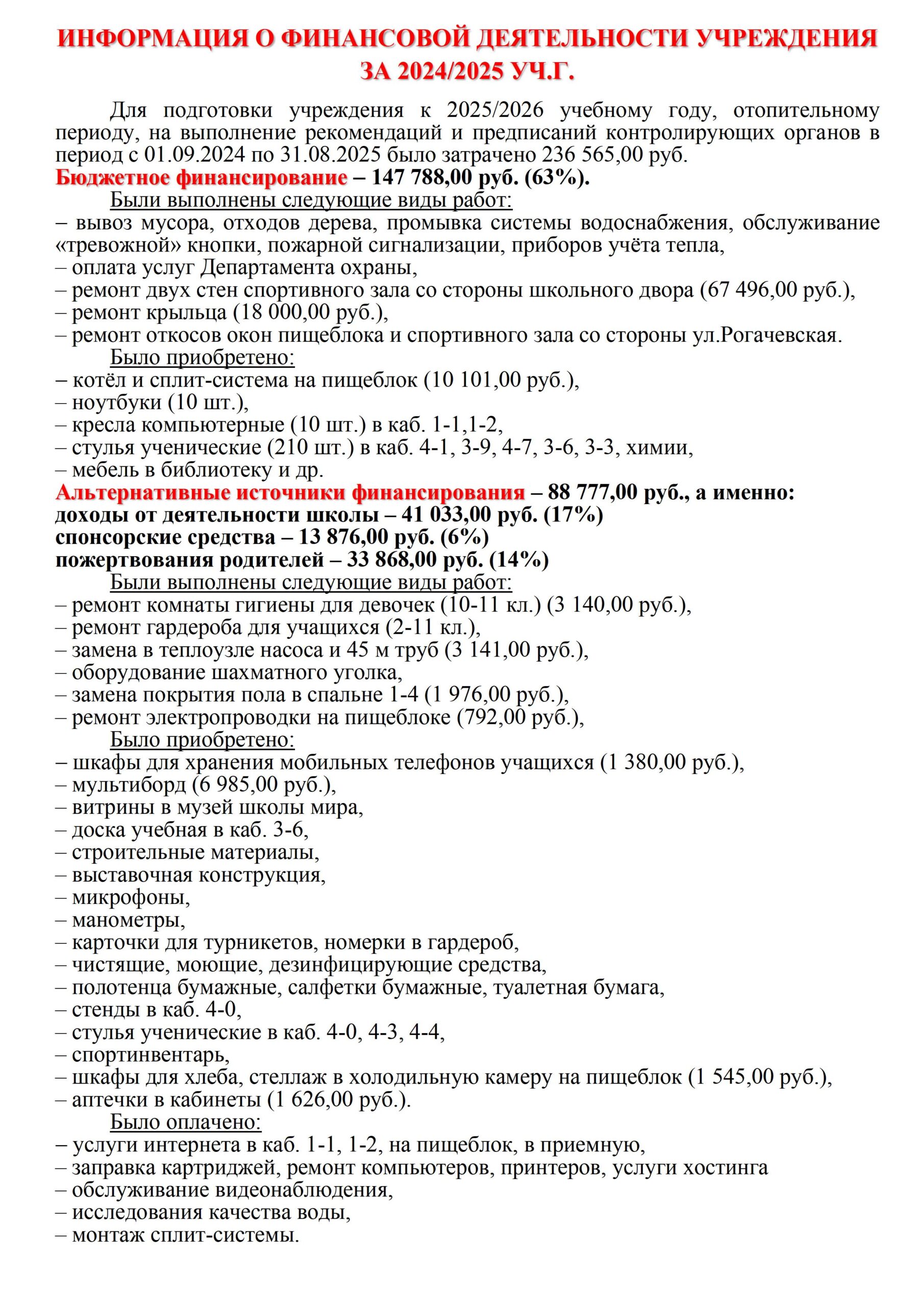 ИНФОРМАЦИЯ О ФИНАНСОВОЙ ДЕЯТЕЛЬНОСТИ УЧРЕЖДЕНИЯ ЗА 2024/2025 УЧ.Г. 29.08.202509.09.2025 Администратор