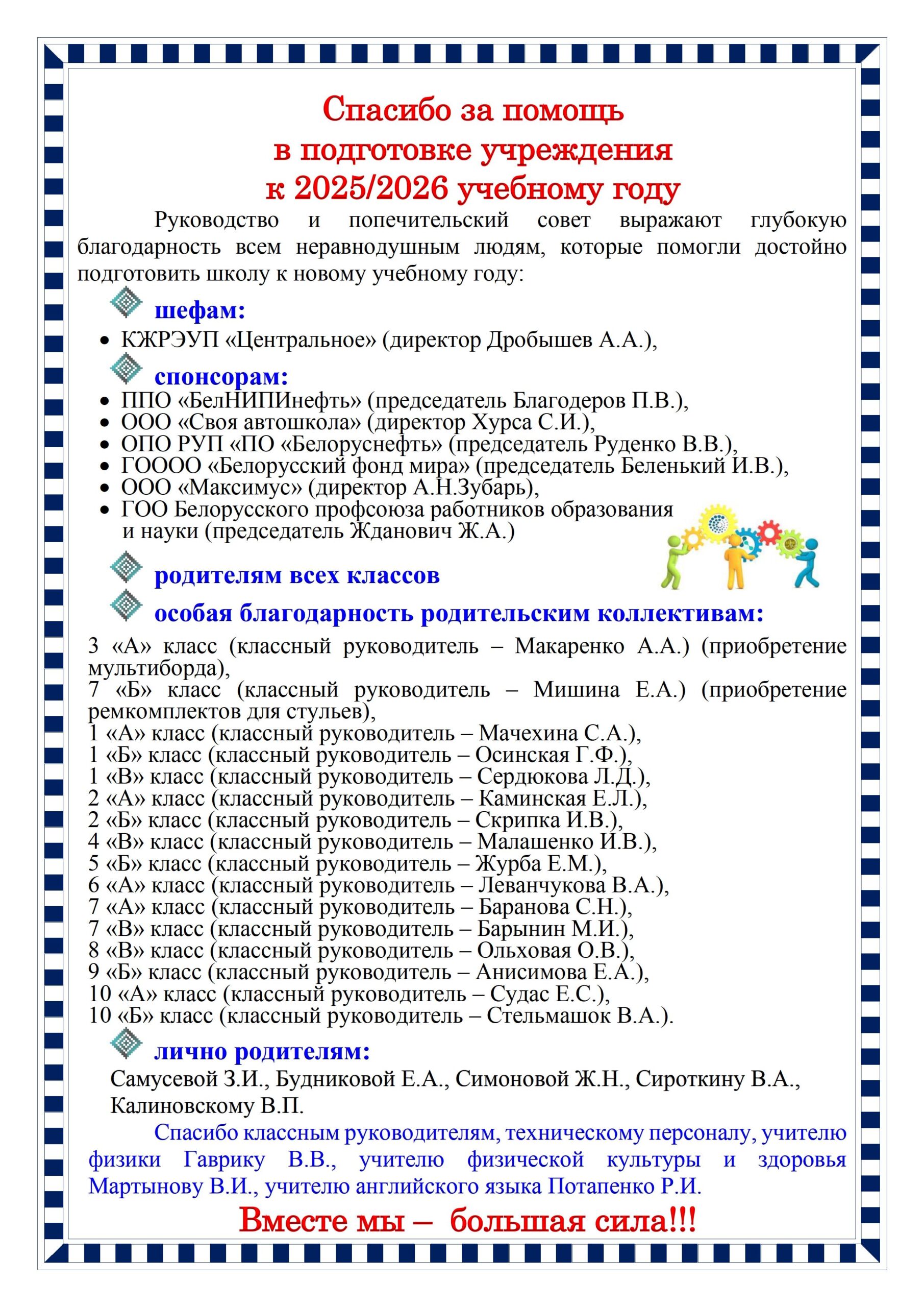 Спасибо за помощь в подготовке учреждения к 2025/2026 учебному году 29.08.202509.09.2025 Администратор