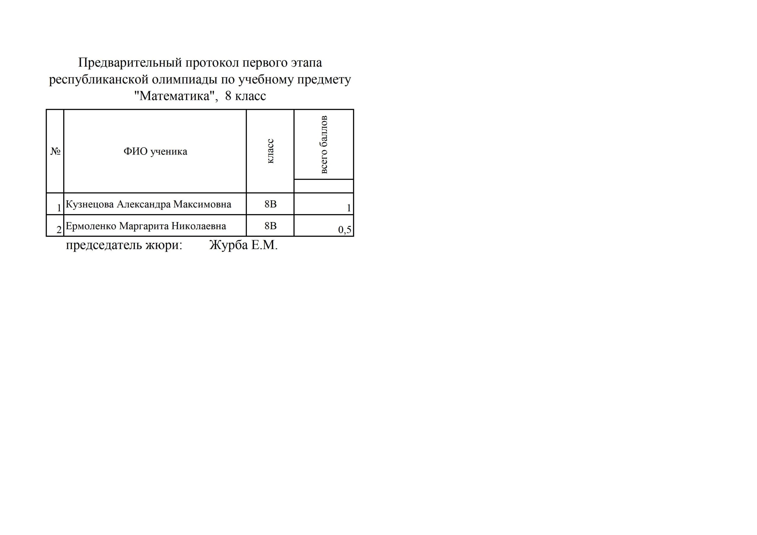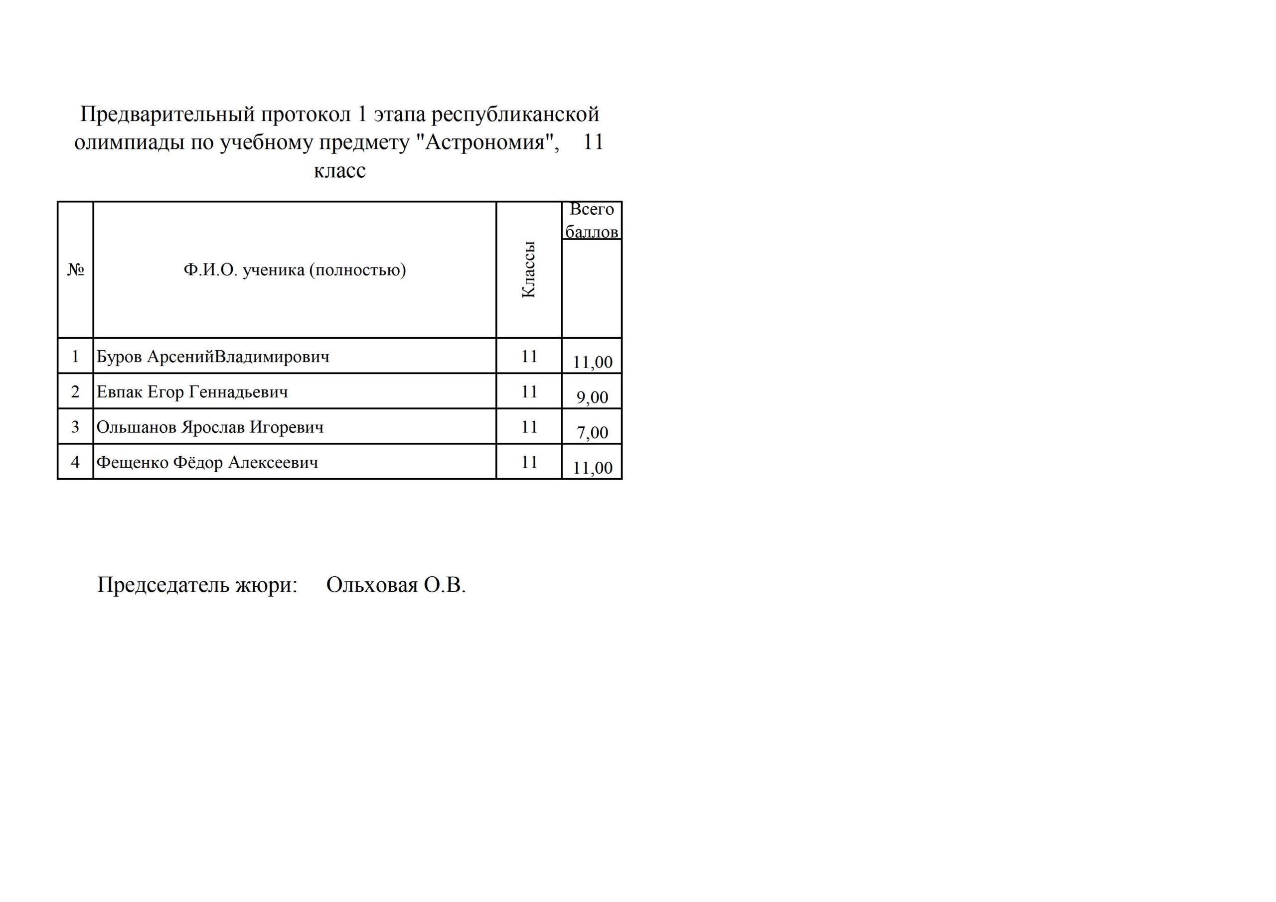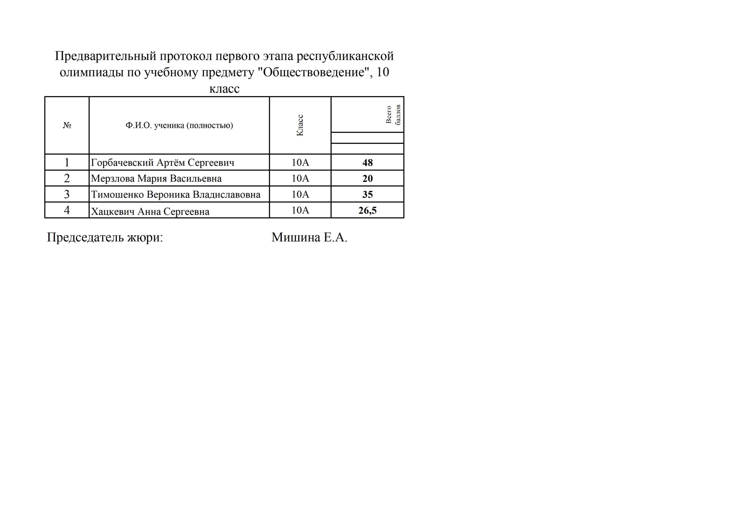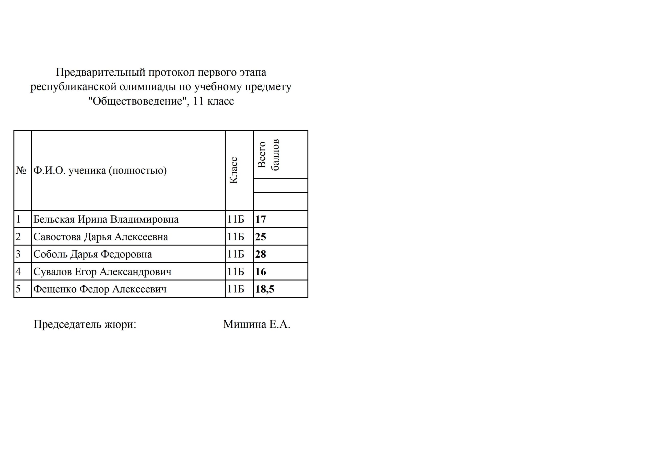 Предварительный протокол первого этапа республиканской олимпиады по учебному предмету Обществоведение