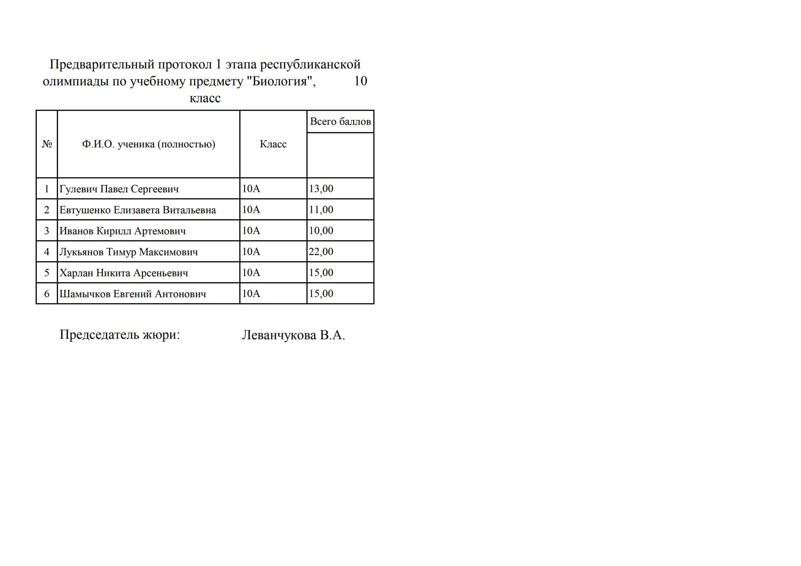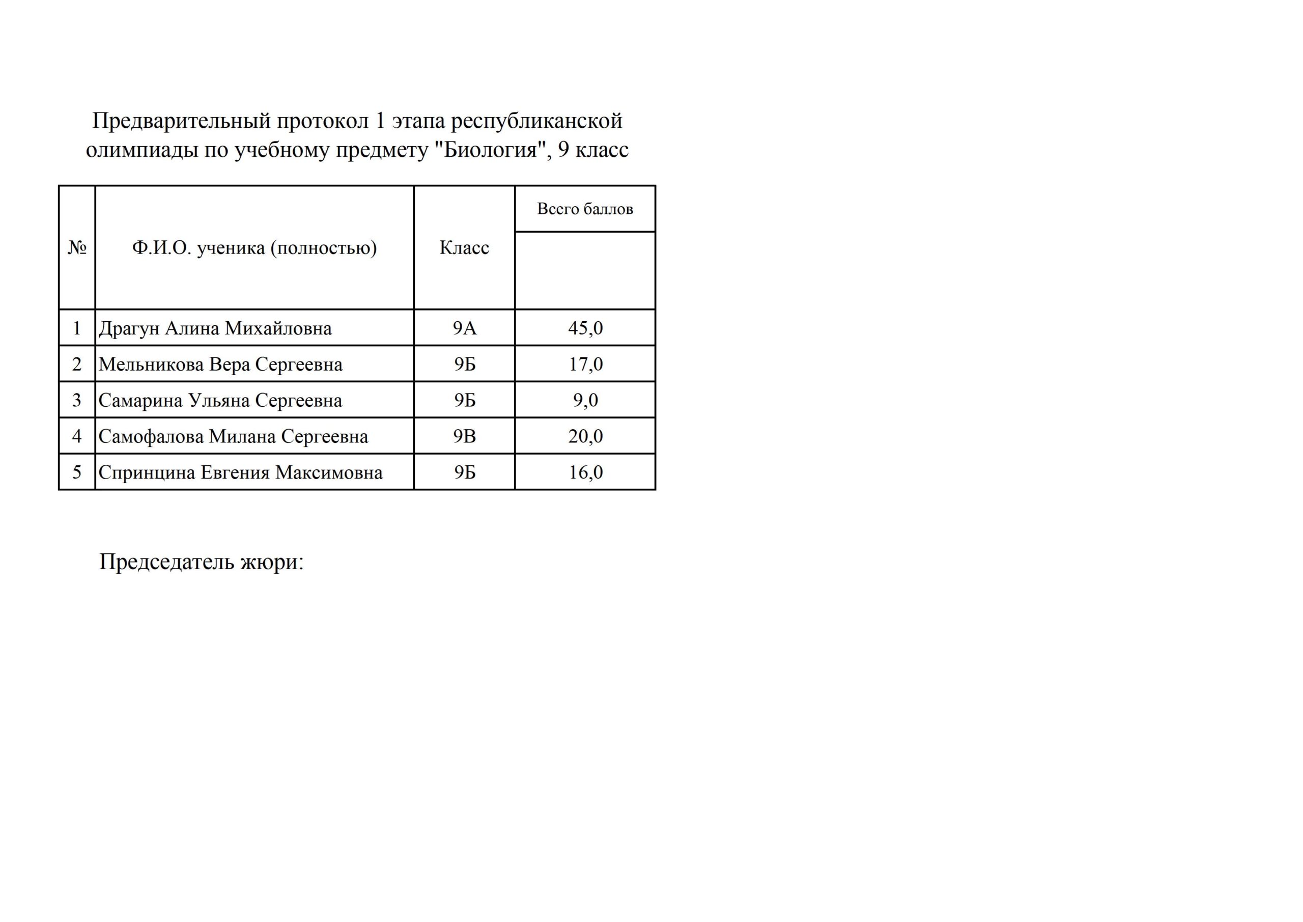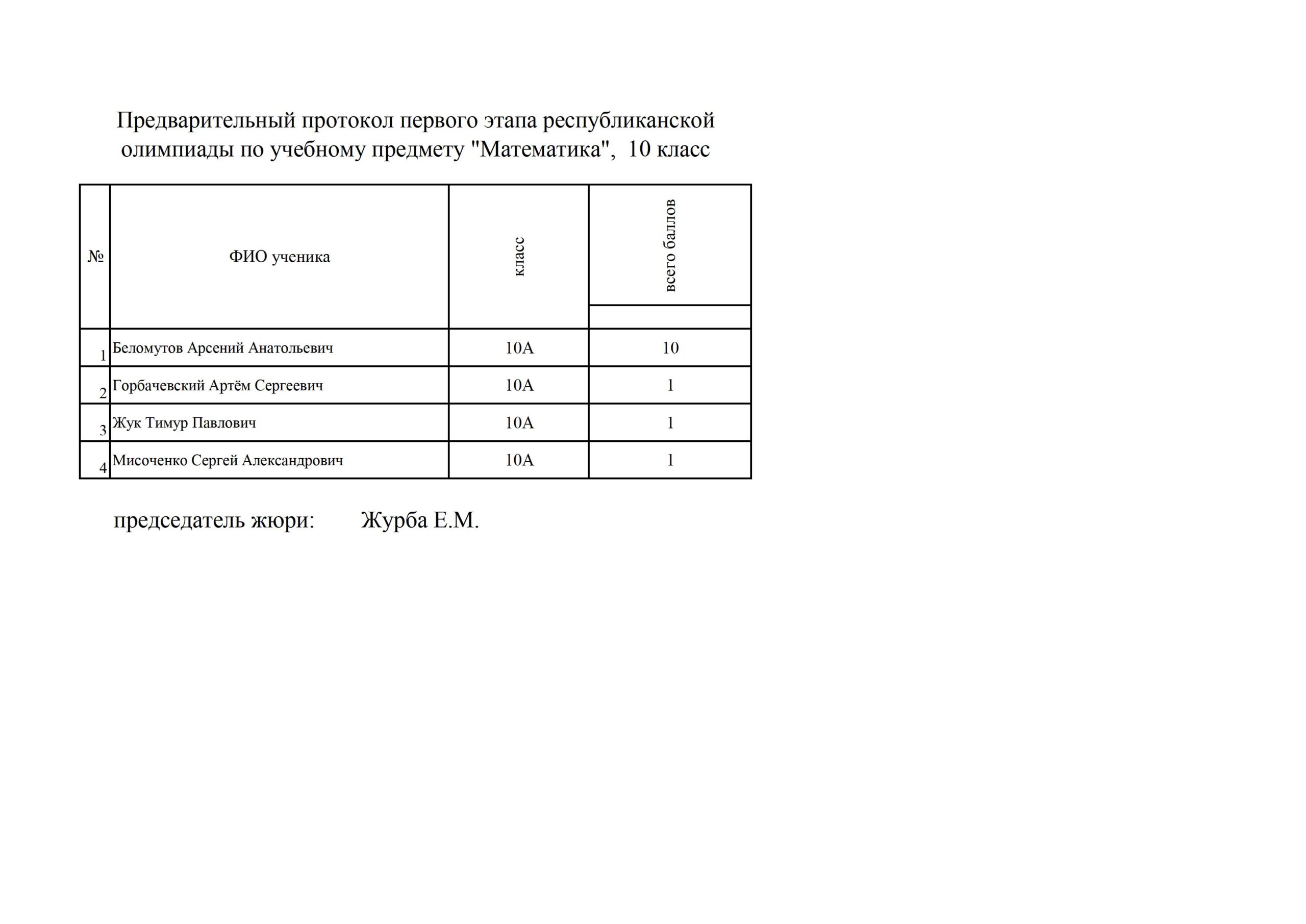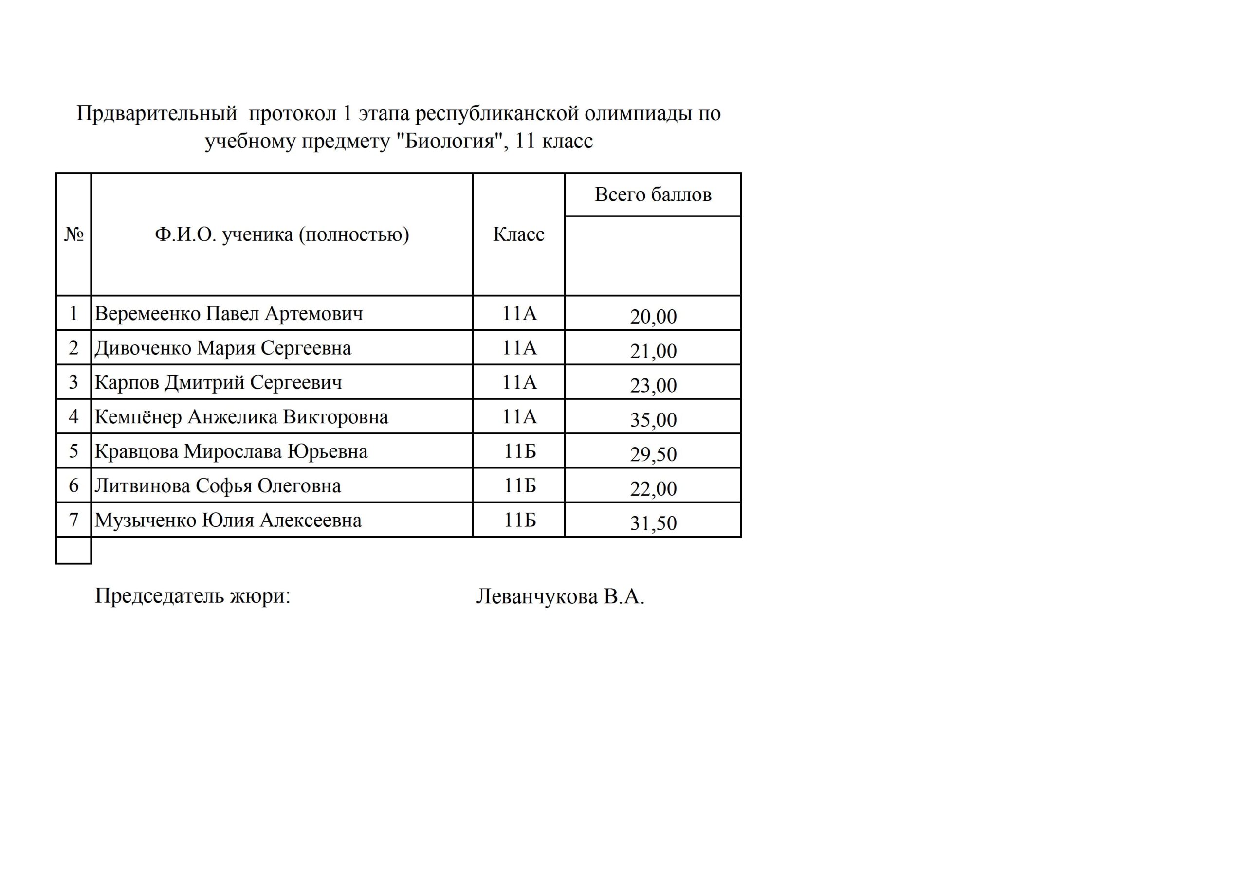 Предварительный протокол первого этапа республиканской олимпиады по учебному предмету Обществоведение