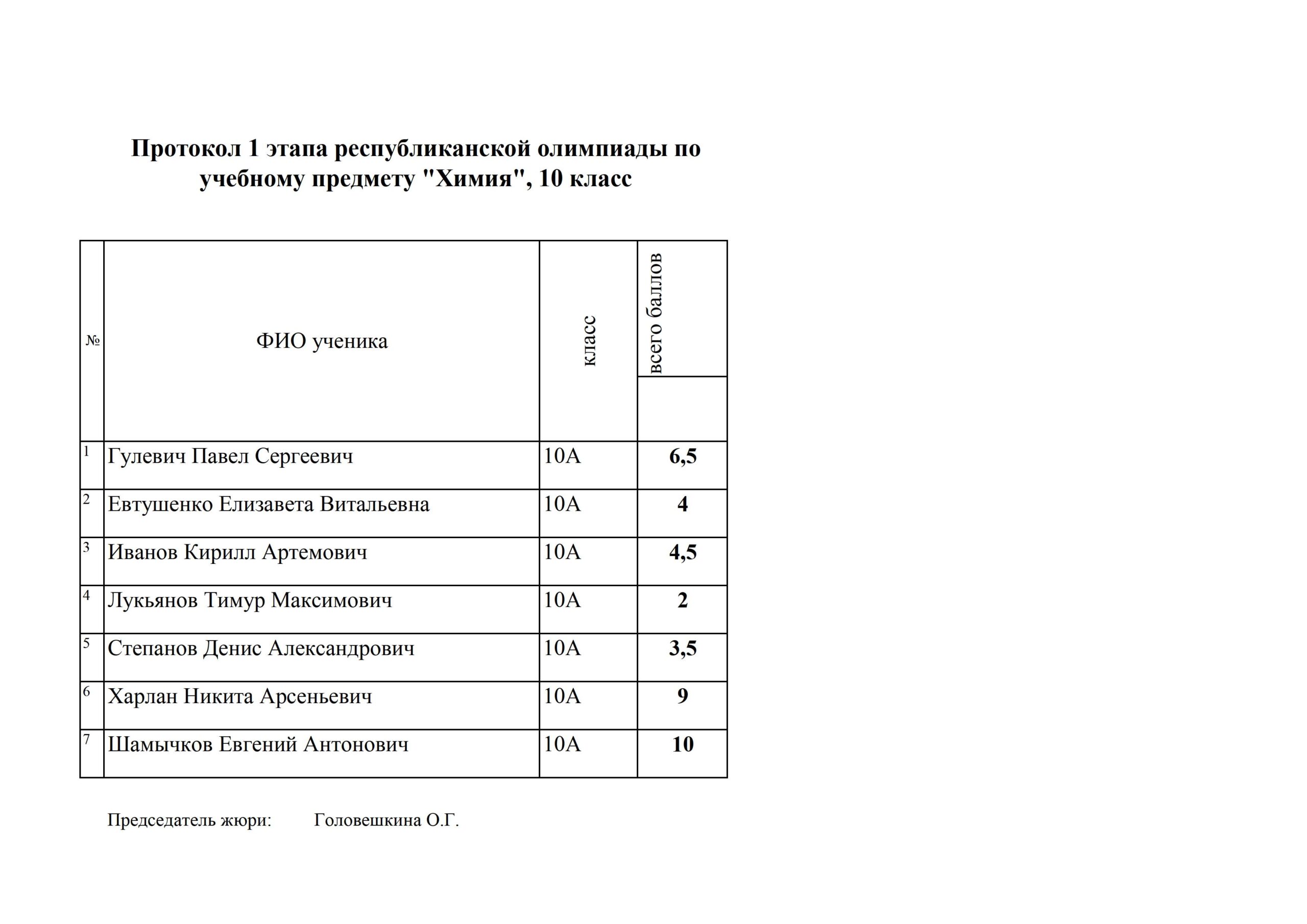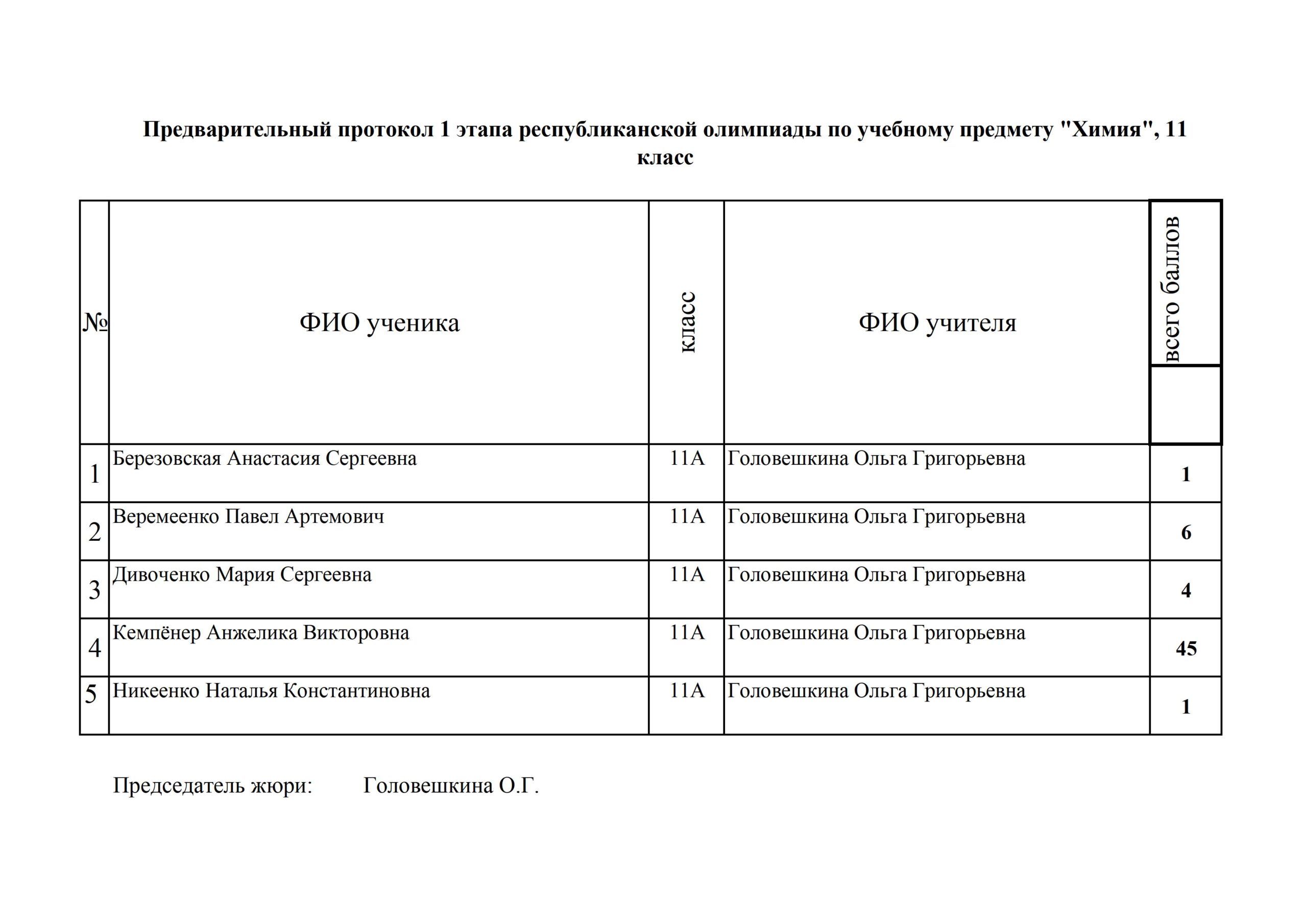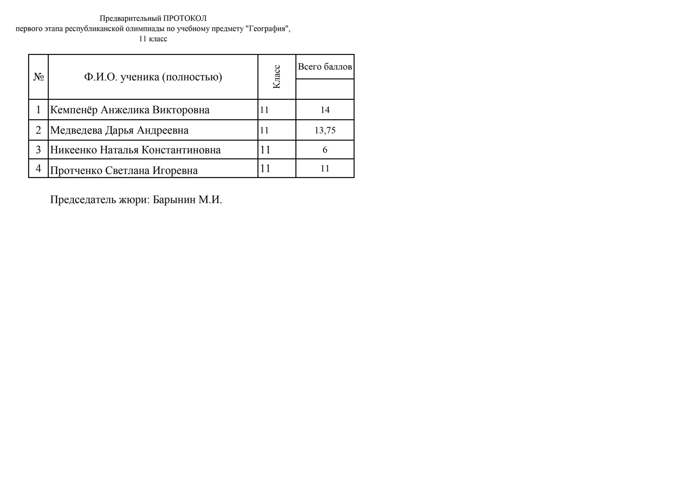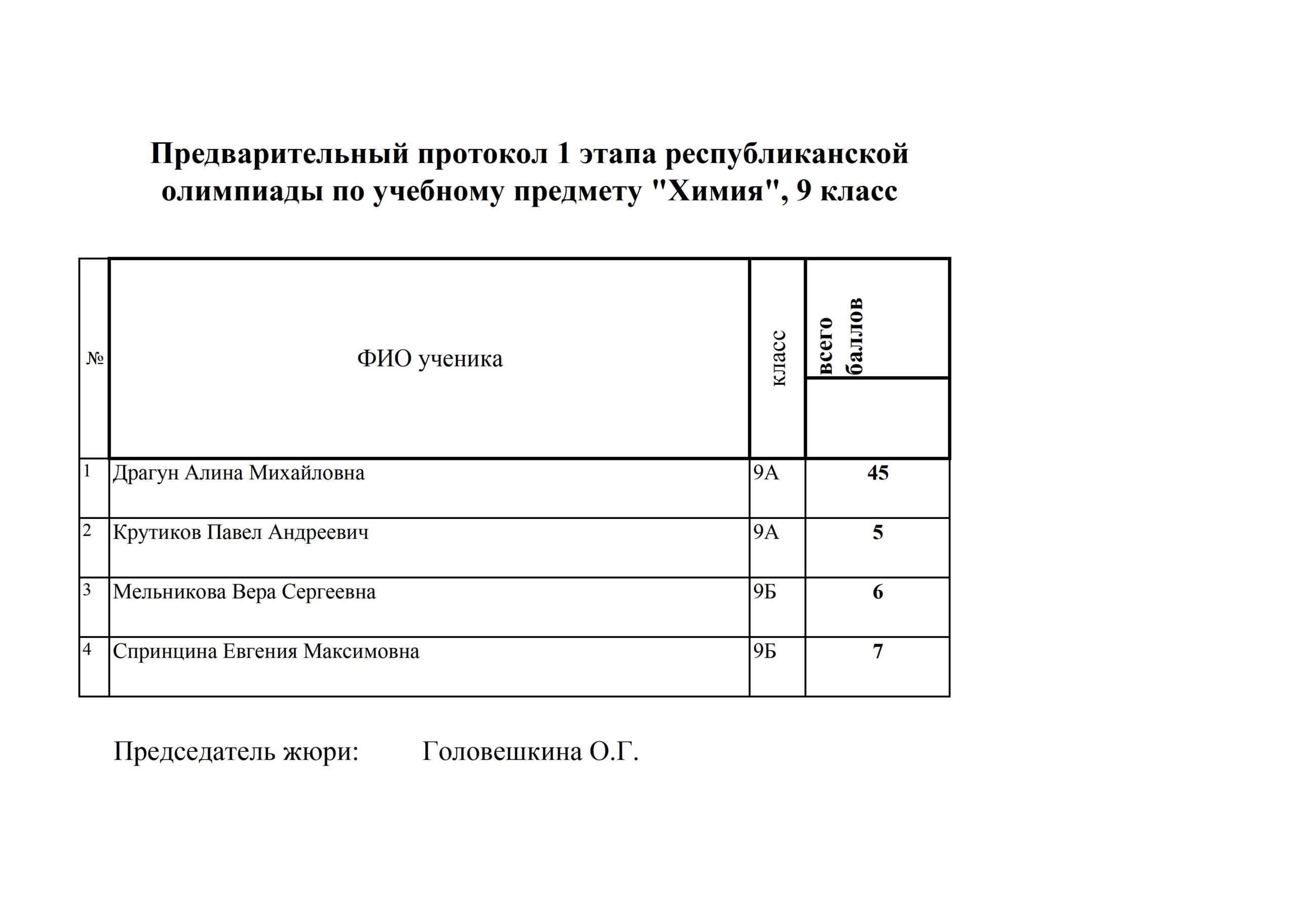 Предварительный протокол первого этапа республиканской олимпиады по учебному предмету Обществоведение