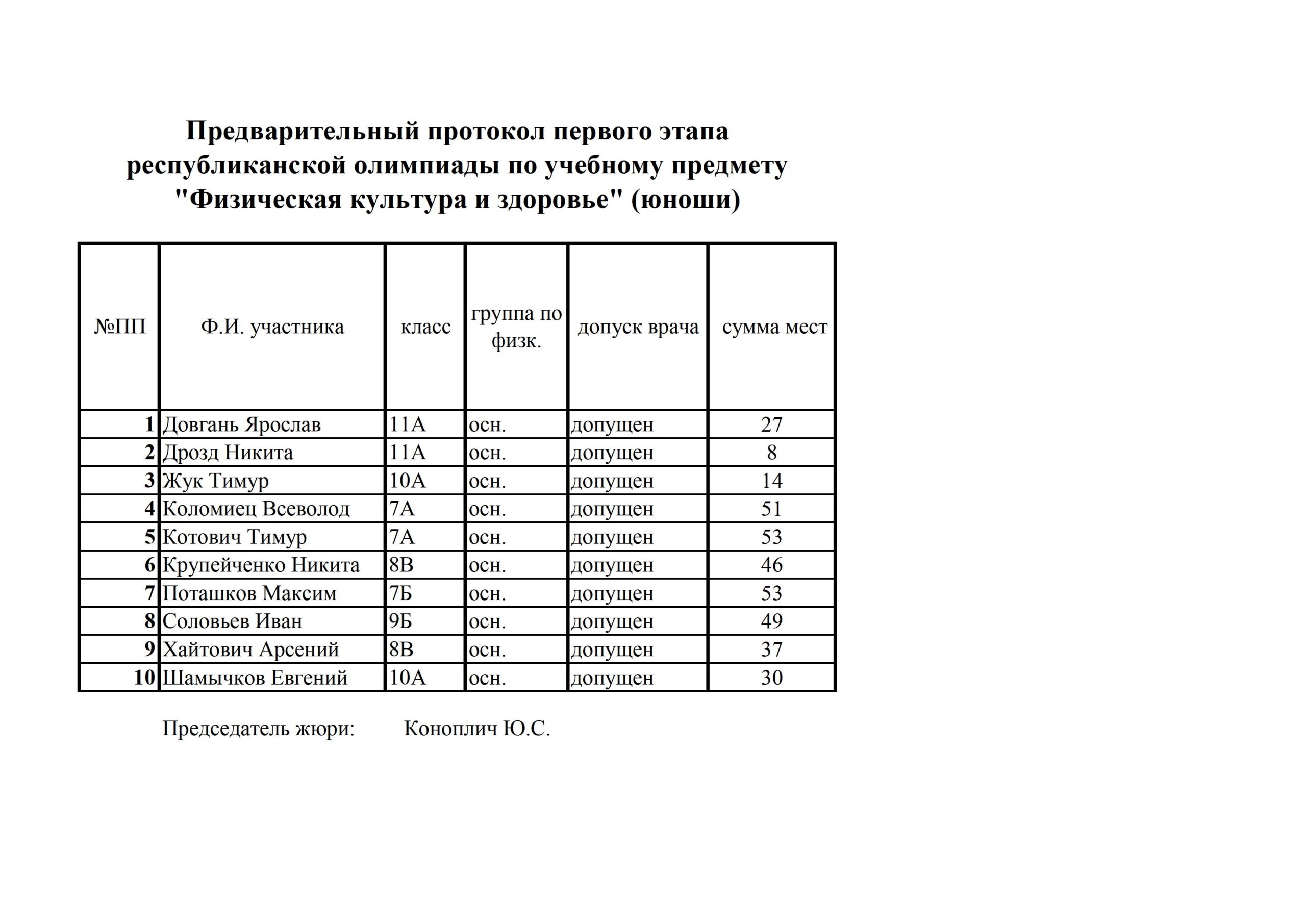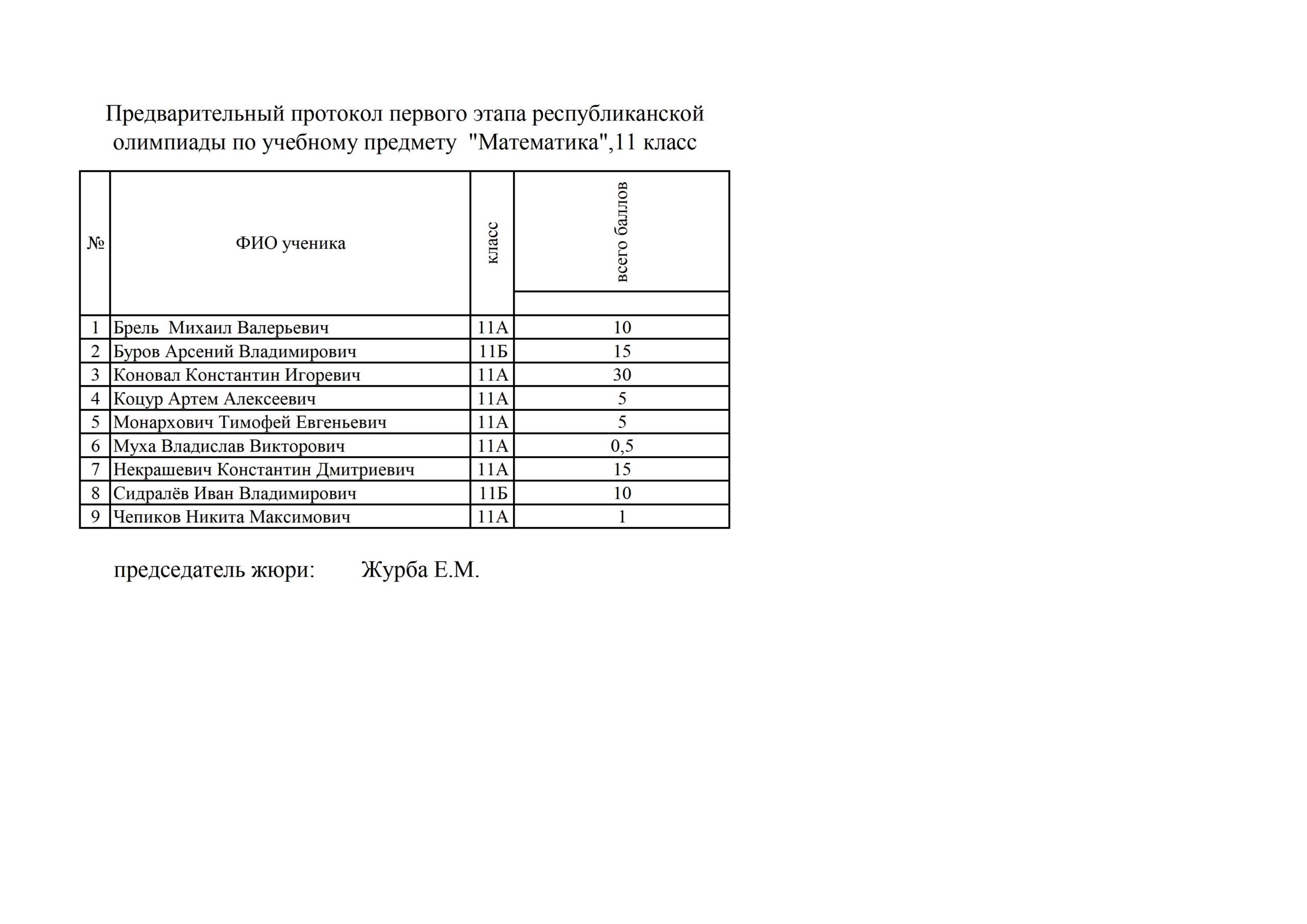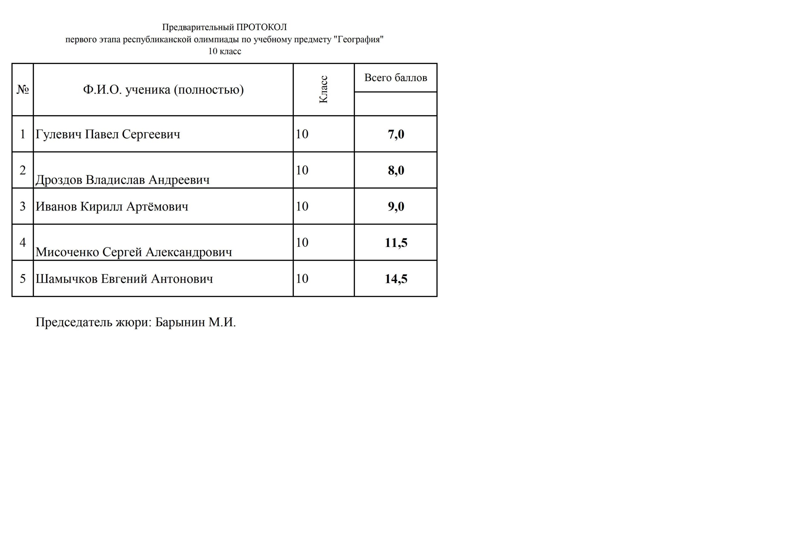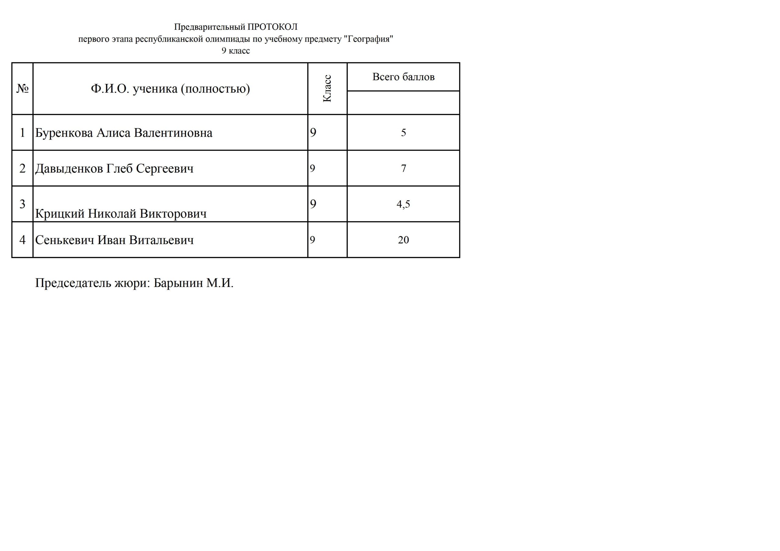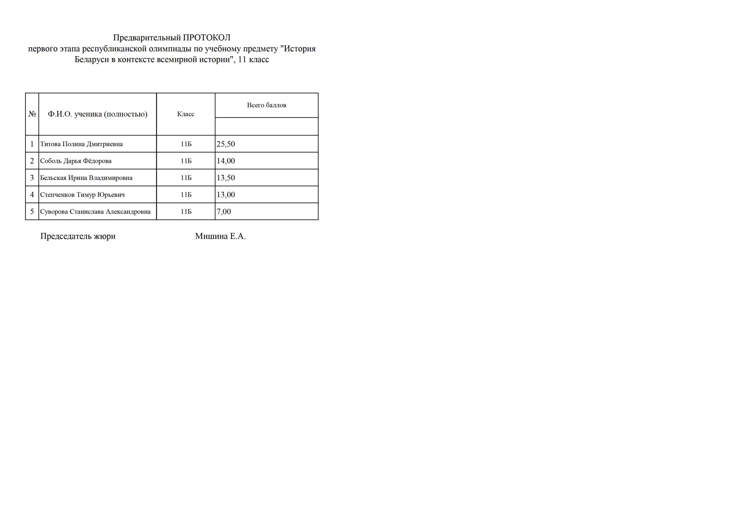 Предварительный протокол первого этапа республиканской олимпиады по учебному предмету История Беларуси в контексте всемирной истории