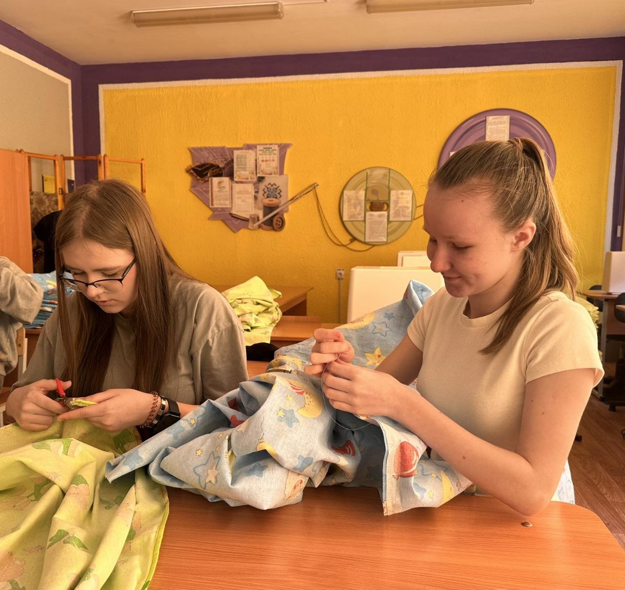 Второй день кипит работа в средней школе № 27 города Гомеля в рамках проекта временной занятости учащихся по пошиву постельного белья.