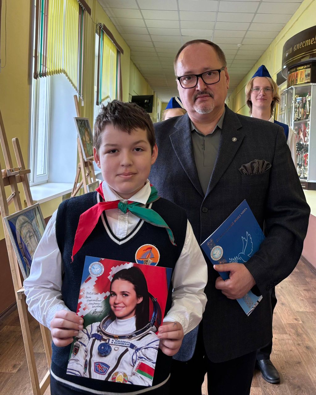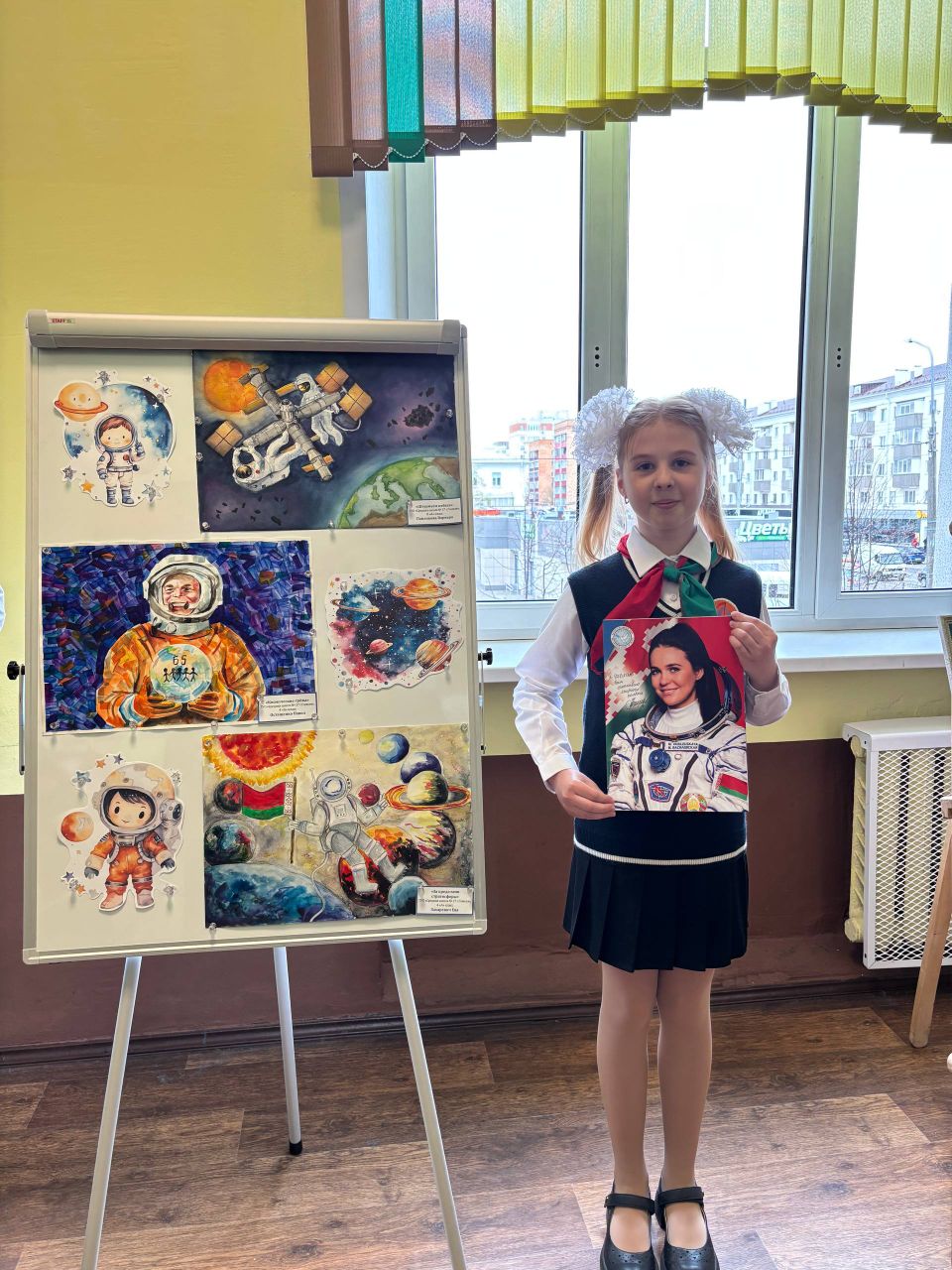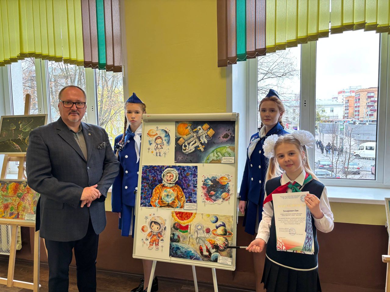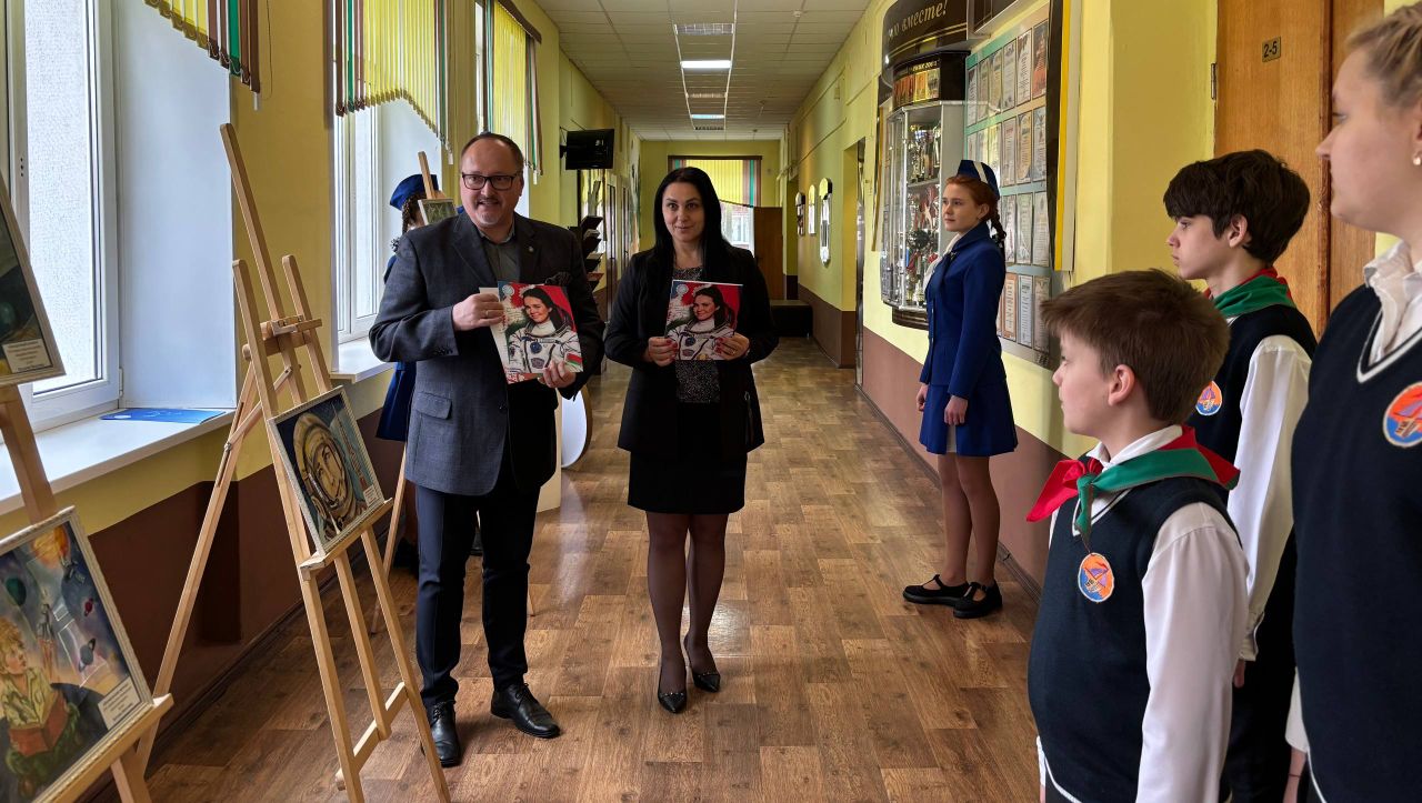 🕊🕊🕊 В средней школе №27 г.Гомеля – Школе Мира – прошло торжественное открытие выставки детского рисунка «Космос объединяет».
