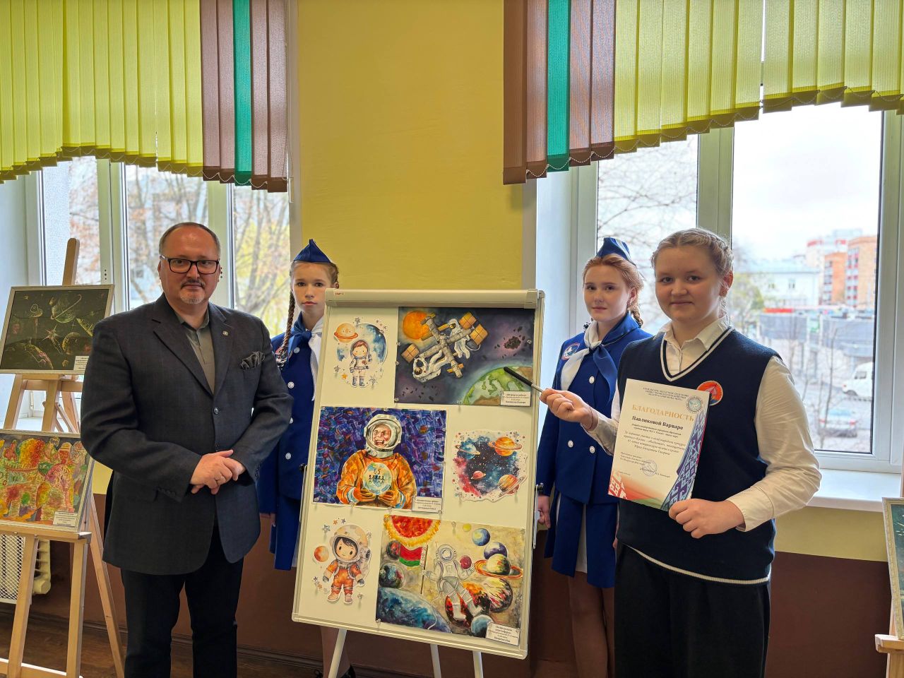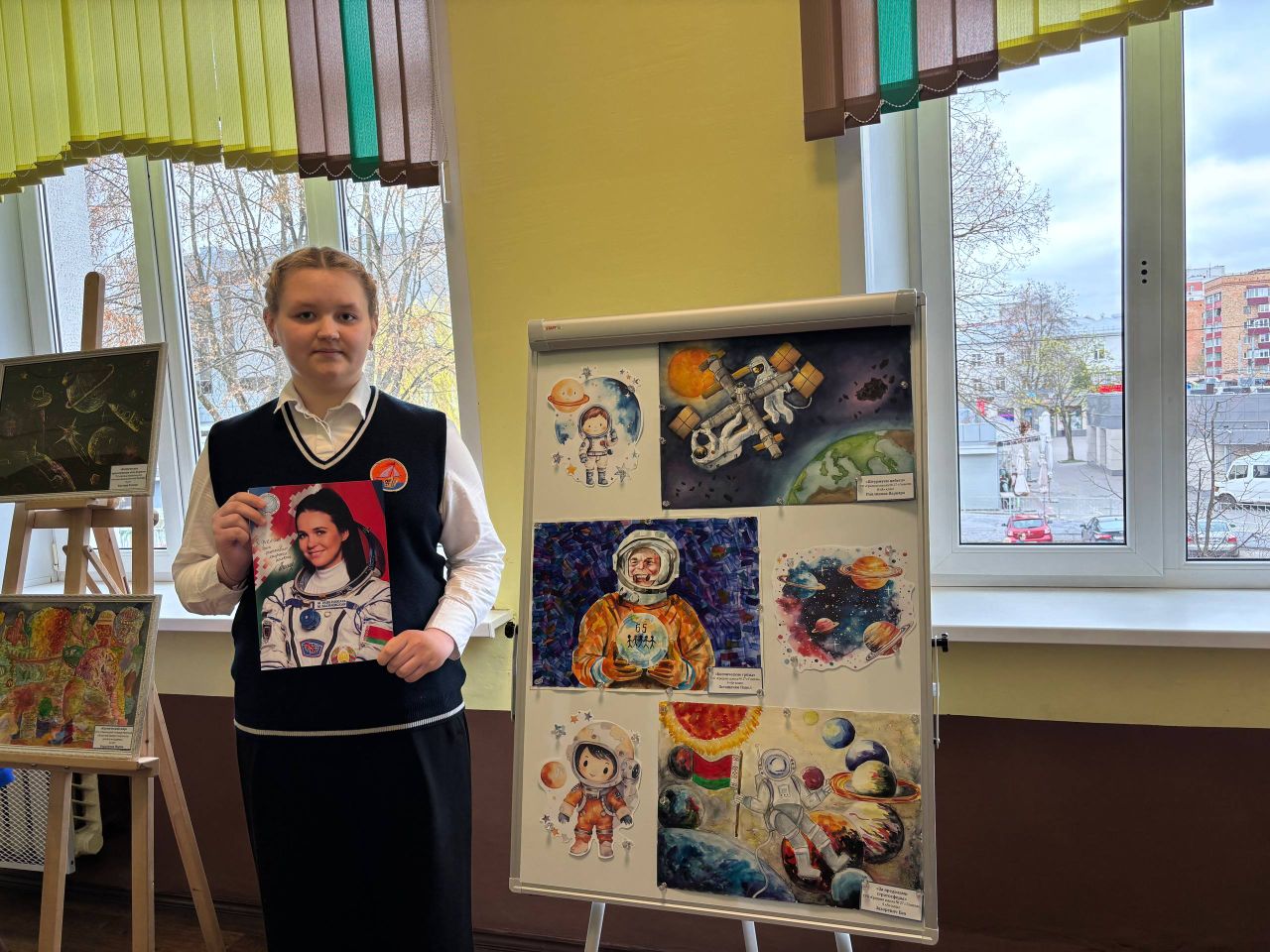 Каждый рисунок — это не просто изображение, а целая вселенная, наполненная мечтами, открытиями и размышлениями о бесконечном космосе. Особое место на выставке занимают работы учащихся школы. Среди юных художников, чьи творения украсили экспозицию, — Варвара Павликова (8 “А” класс), Ева Захарченко (4 “А” класс), Виталина Толстова (7 “В” класс), Павел Остапенко (6 “Б” класс).