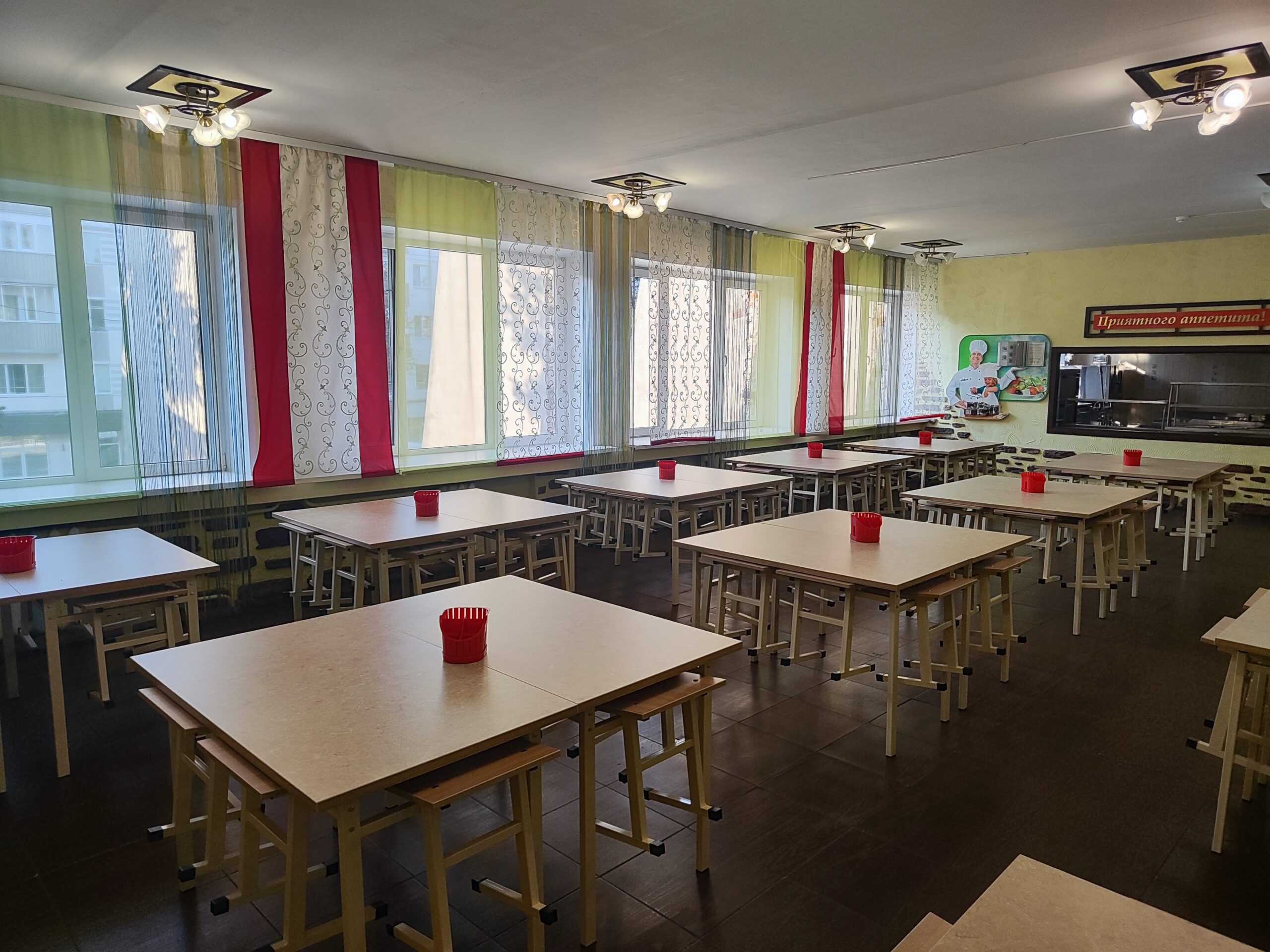 Проектная мощность обеденного зала – 128 посадочных мест. Имеется буфет. Организован питьевой режим.