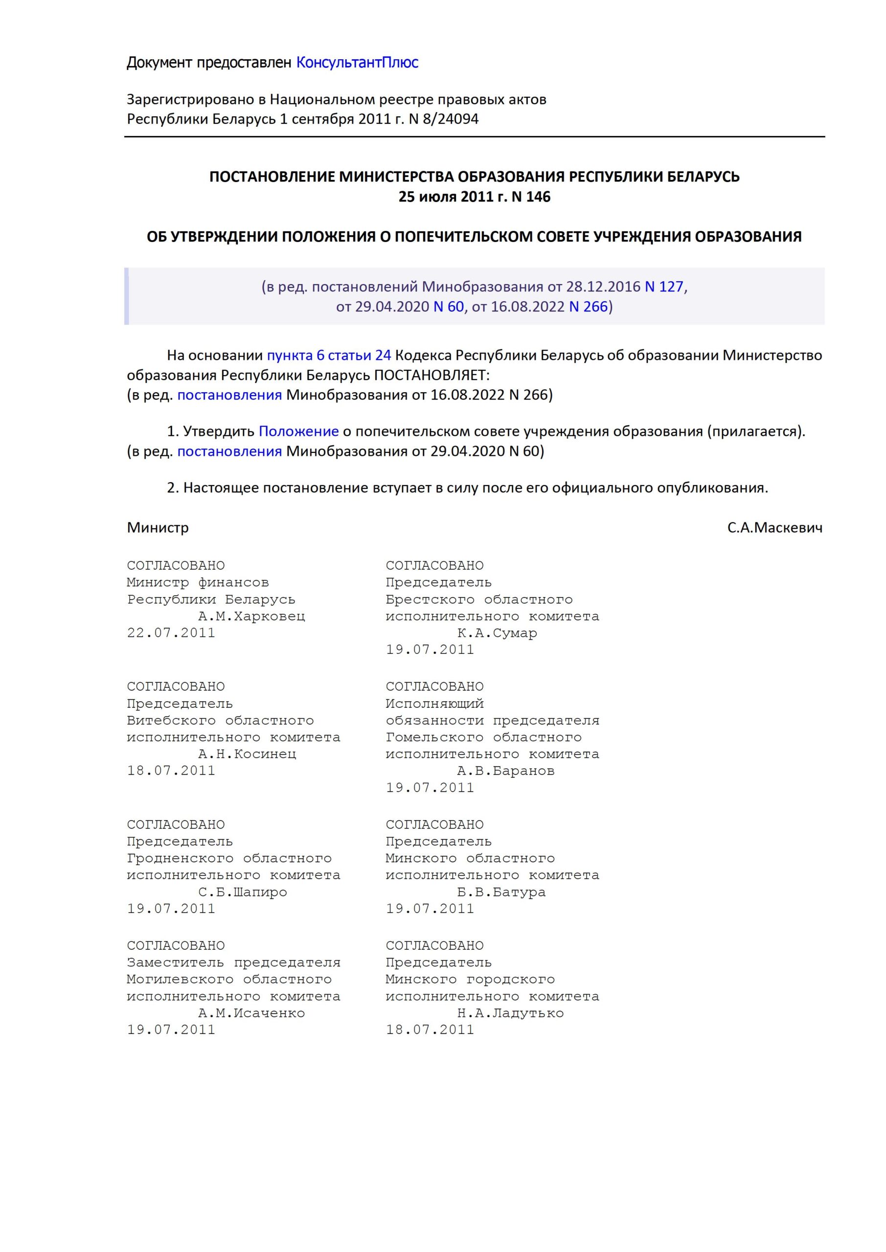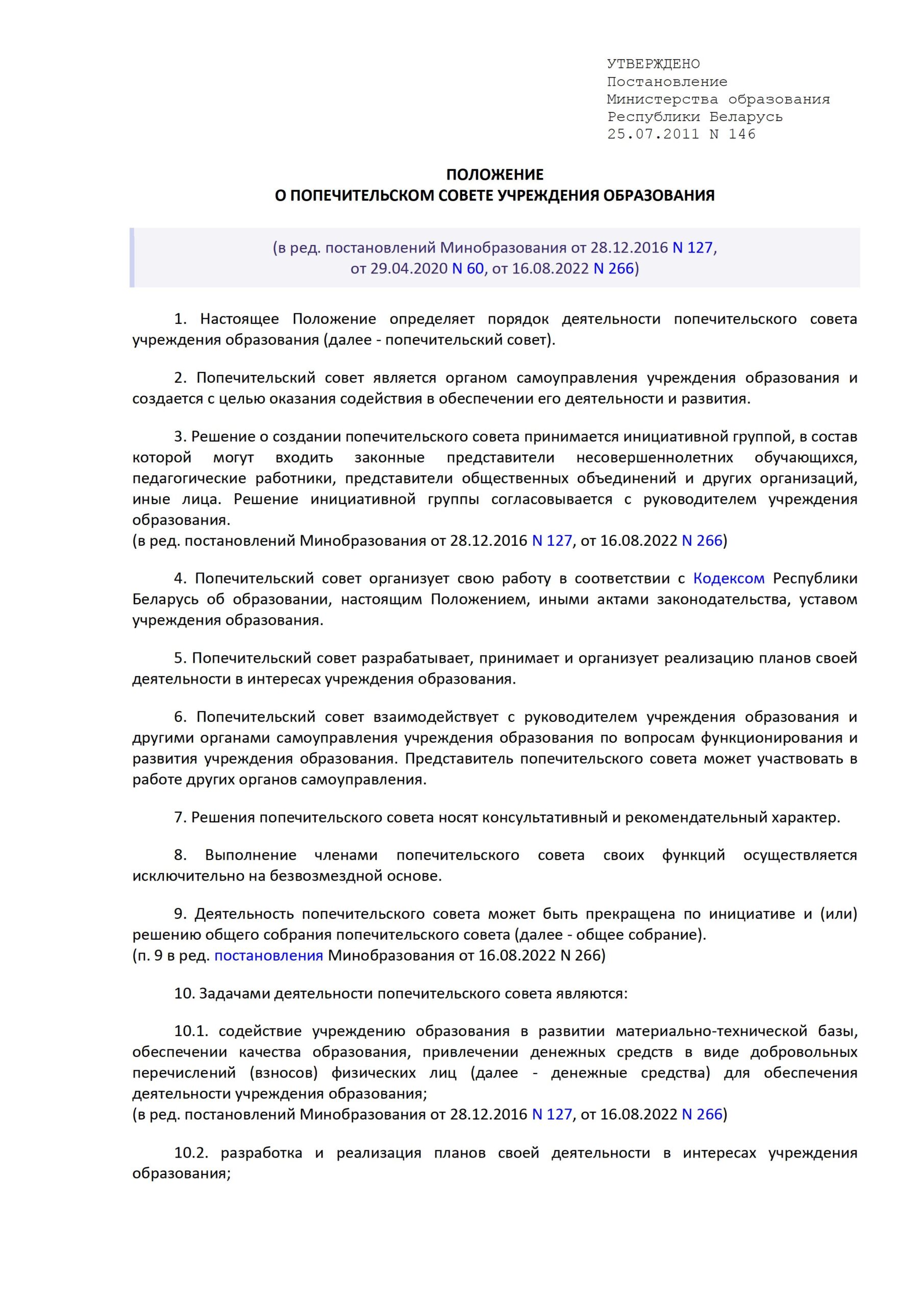 ПОСТАНОВЛЕНИЕ ОБ УТВЕРЖДЕНИИ ПОЛОЖЕНИЯ О ПОПЕЧИТЕЛЬСКОМ СОВЕТЕ УЧРЕЖДЕНИЯ ОБРАЗОВАНИЯ